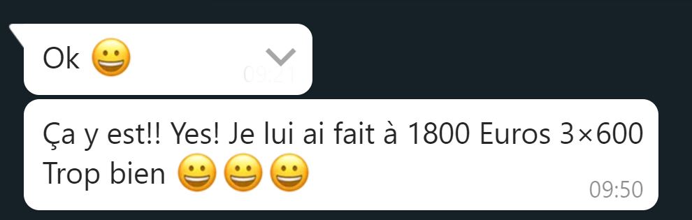 Une Vente à 1800€ après une semaine d'accompagnement !